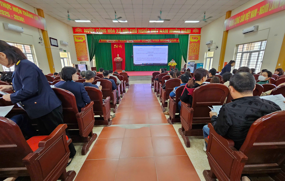 Ngay sau phần phát biểu của đ/c Phó chủ tịch UBND xã, đoàn công tác Chi cục Thuế cơ sở 3 đã triển khai các nội dung quan trọng gồm: Phổ biến các nội dung chuyển đổi hộ kinh doanh nộp thuế theo phương pháp khoán sang phương pháp kê khai. Trong đó chú trọng đến mục tiêu, sự cần thiết của xóa bỏ hình thức thuế khoán từ 1/1/2026; lợi ích của chuyển đổi phương pháp khoán thuế sang kê khai thuế, chuyển đổi hộ kinh doanh lên doanh nghiệp; các giải pháp và nghĩa vụ mà hộ kinh doanh phải thực hiện; một số lưu ý đối với hộ kinh doanh nộp thuế theo phương thức kê khai; hóa đơn, chứng từ; hướng dẫn cài đặt EtaxMobile, giới thiệu toàn bộ giải pháp bán hàng, xuất hóa đơn và kê khai thuế. Đại diện nhà cung cấp giải pháp hỗ trợ cũng đã phát biểu, cung cấp thông tin về phần mềm và các tiện ích giúp hộ kinh doanh thực hiện kê khai thuận lợi nhất.