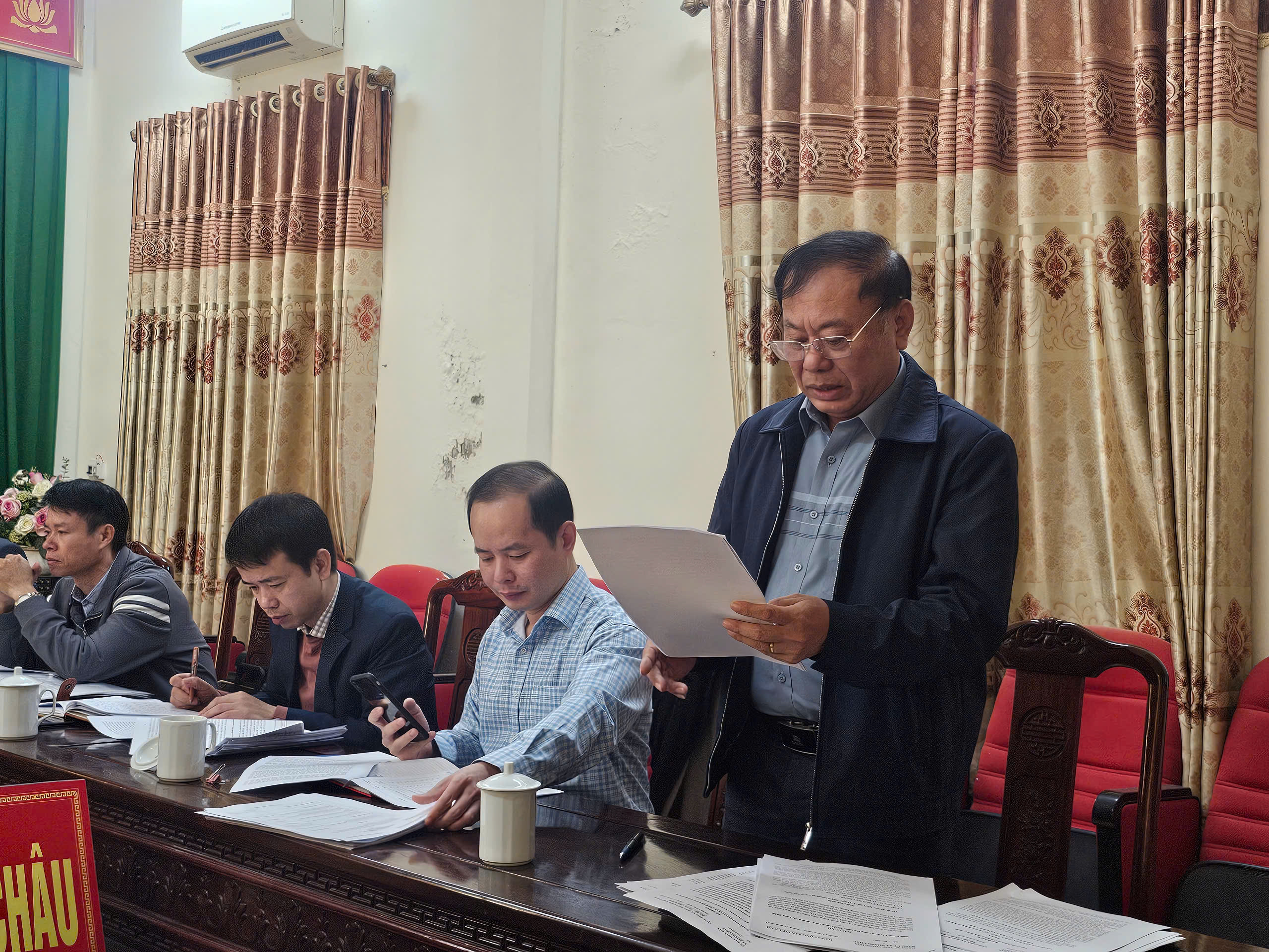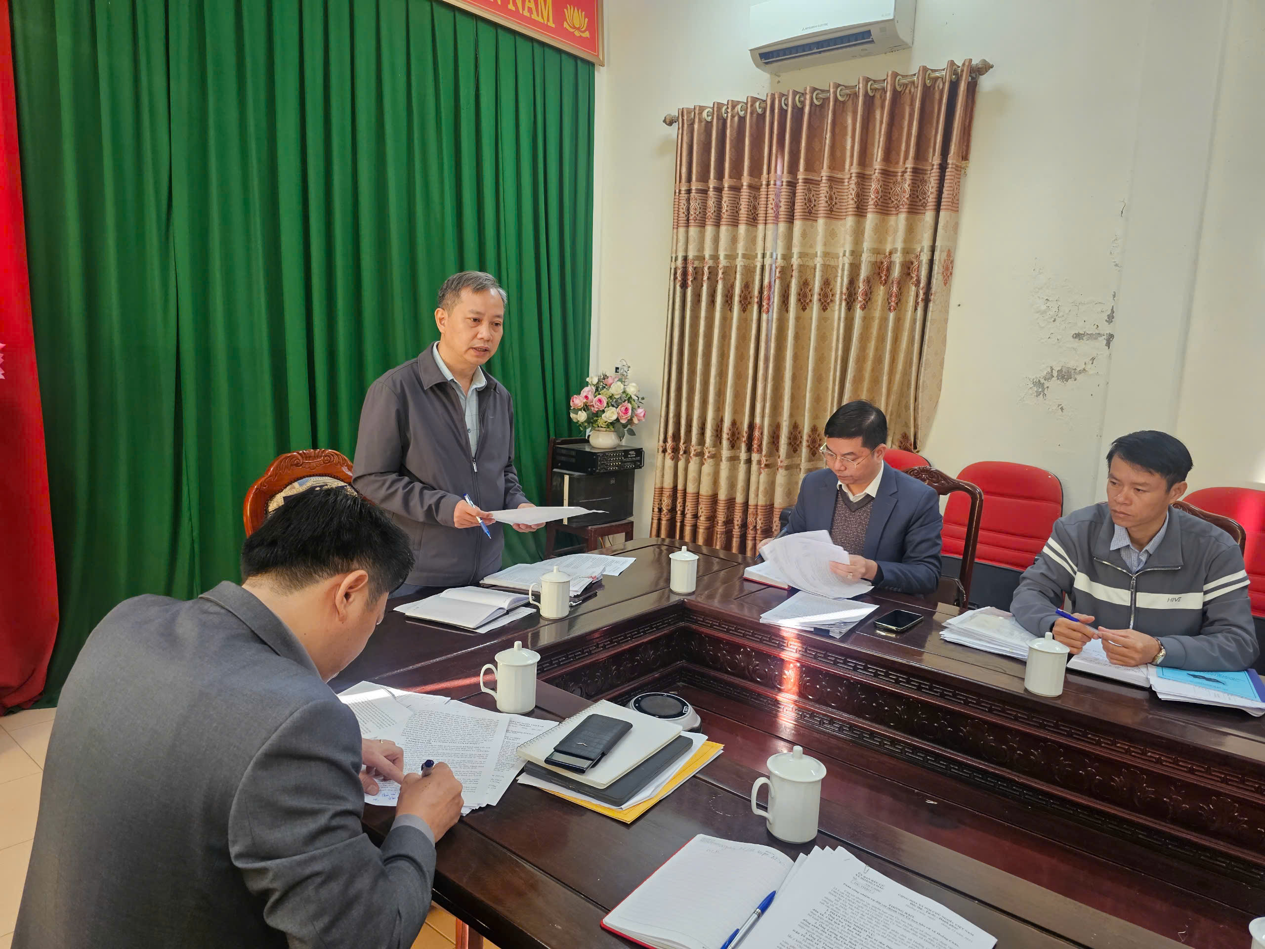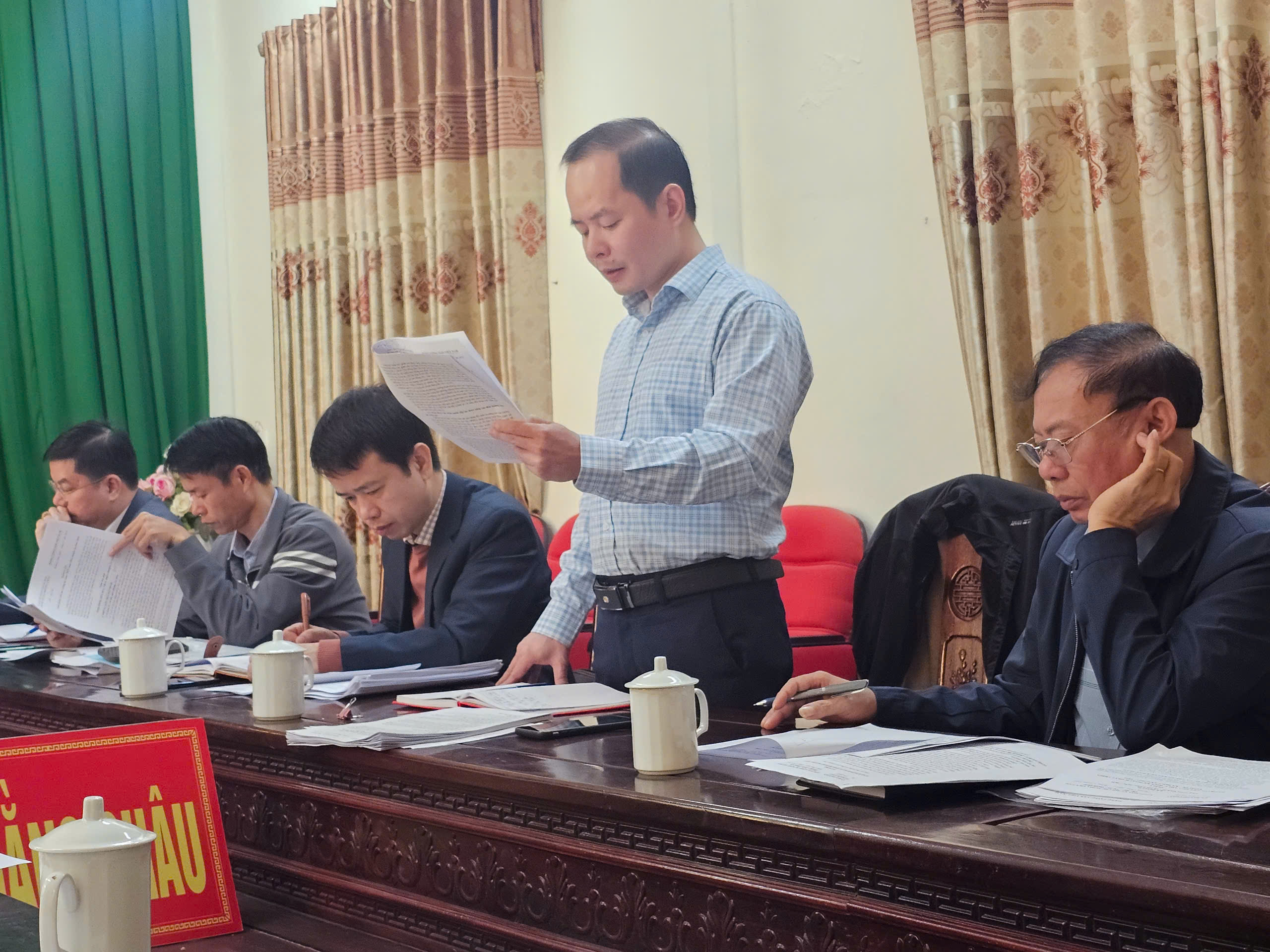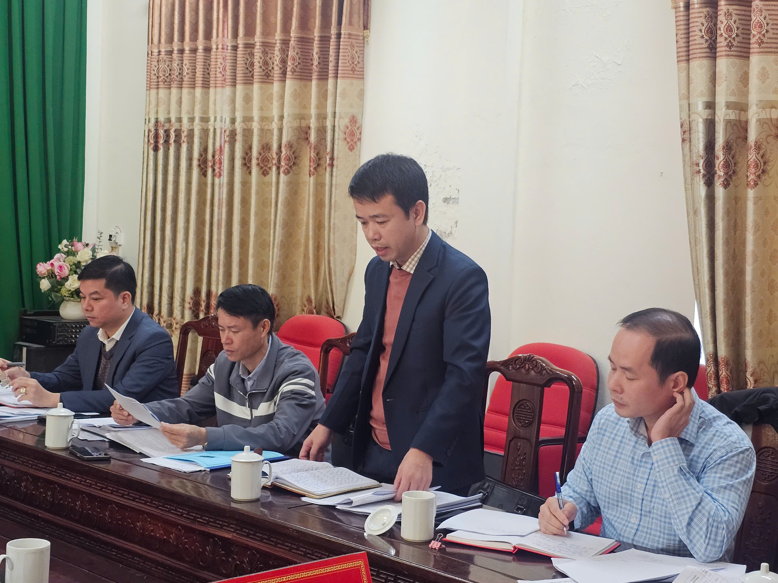 Đồng chí Lê Huy Lượng, Bí thư Đảng ủy, Chủ tịch HĐND xã chủ trì hội nghị. Tham dự hội nghị có đồng chí Đoàn Đăng Khoa, Phó Bí thư Thường trực Đảng ủy; đồng chí Chu Văn Đoàn, Phó Bí thư, Chủ tịch UBND xã; các đồng chí Ủy viên Ban thường vụ Đảng ủy; Chánh Văn phòng Đảng ủy; Chánh Văn phòng HĐND-UBND xã; Đ/c Phó Chủ nhiệm UB kiểm tra Đảng ủy; Trưởng các phòng: Kinh tế, Văn hóa xã hội.