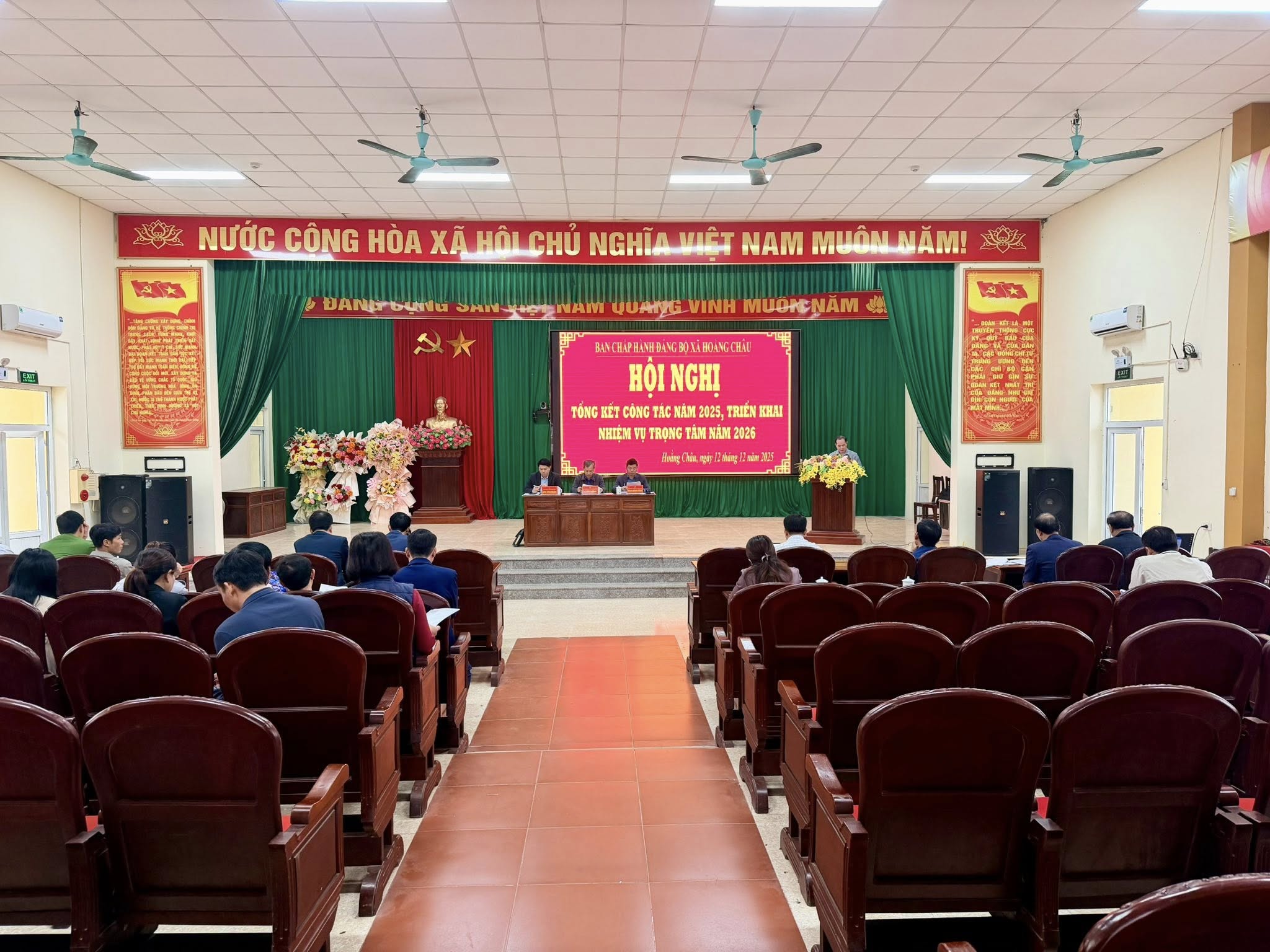 Sáng ngày 12 tháng 12 năm 2025, tại Hội trường cơ quan Hội đồng nhân dân và Ủy ban nhân dân xã, Đảng ủy xã Hoằng Châu đã long trọng tổ chức Hội nghị Ban Chấp hành Đảng bộ xã lần thứ VI nhằm đánh giá kết quả thực hiện nhiệm vụ năm 2025 và triển khai phương hướng, nhiệm vụ năm 2026.