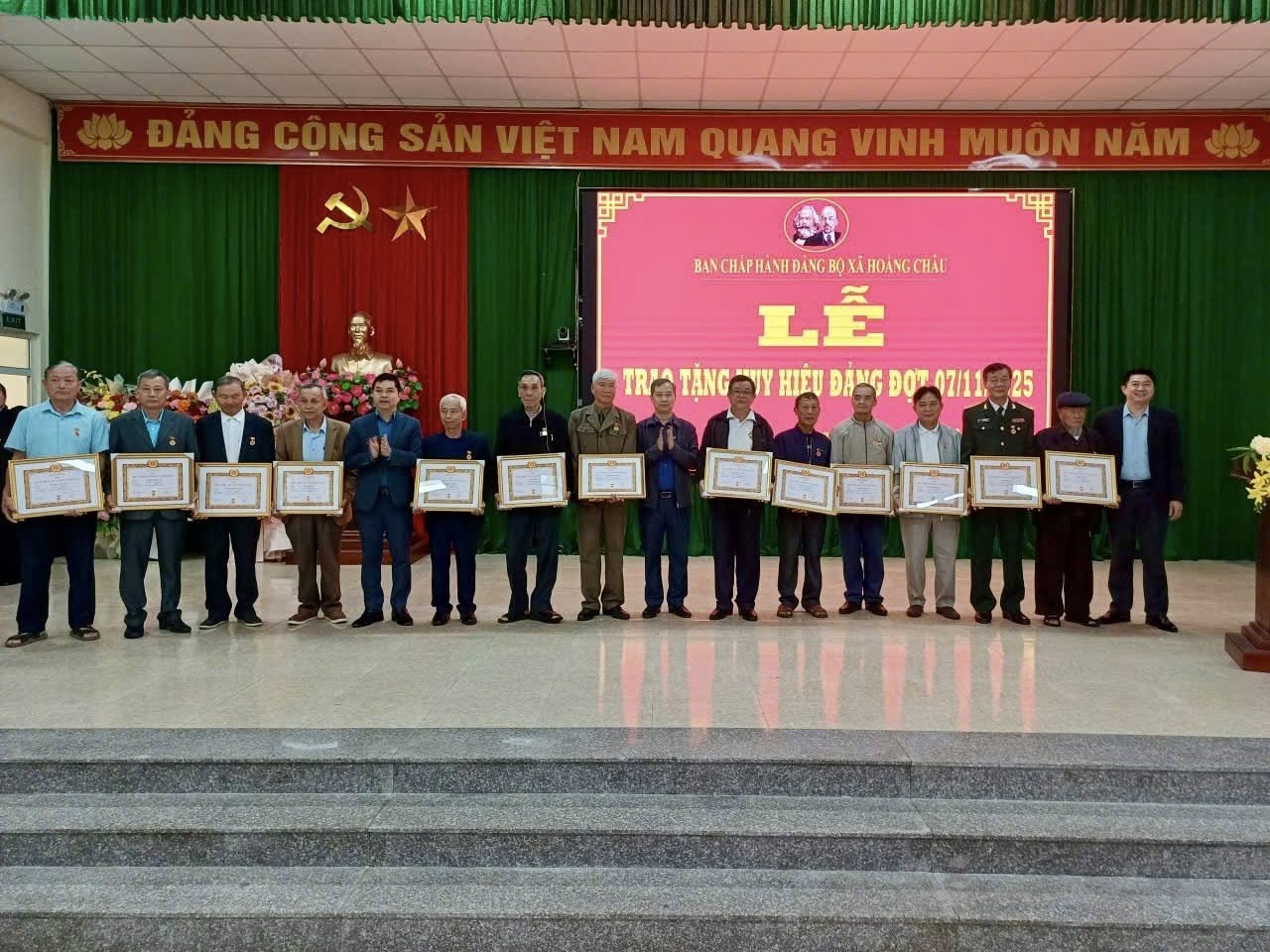 Sáng ngày 12 tháng 12 năm 2025, tại Hội trường cơ quan Hội đồng nhân dân và Ủy ban nhân dân xã, Đảng ủy xã Hoằng Châu đã long trọng tổ chức Lễ trao Huy hiệu Đảng đợt 07 tháng 11 năm 2025 cho các đảng viên đủ điều kiện.