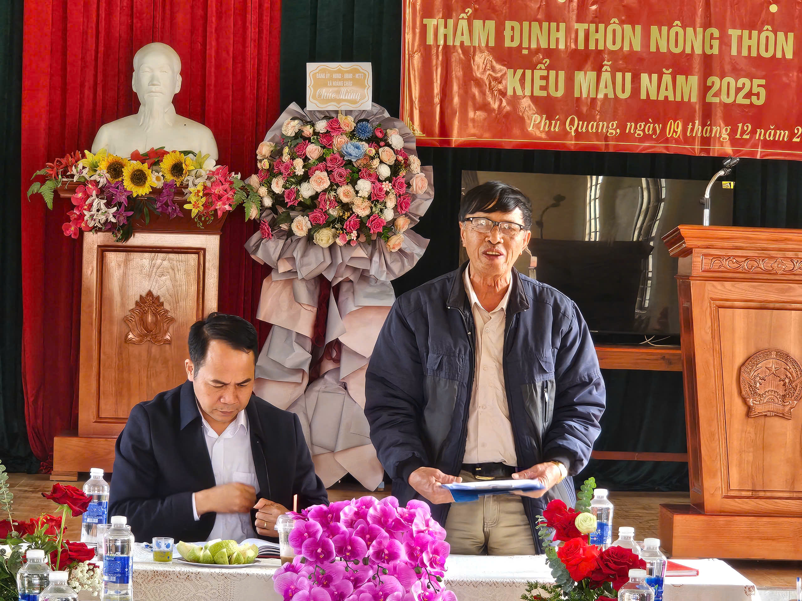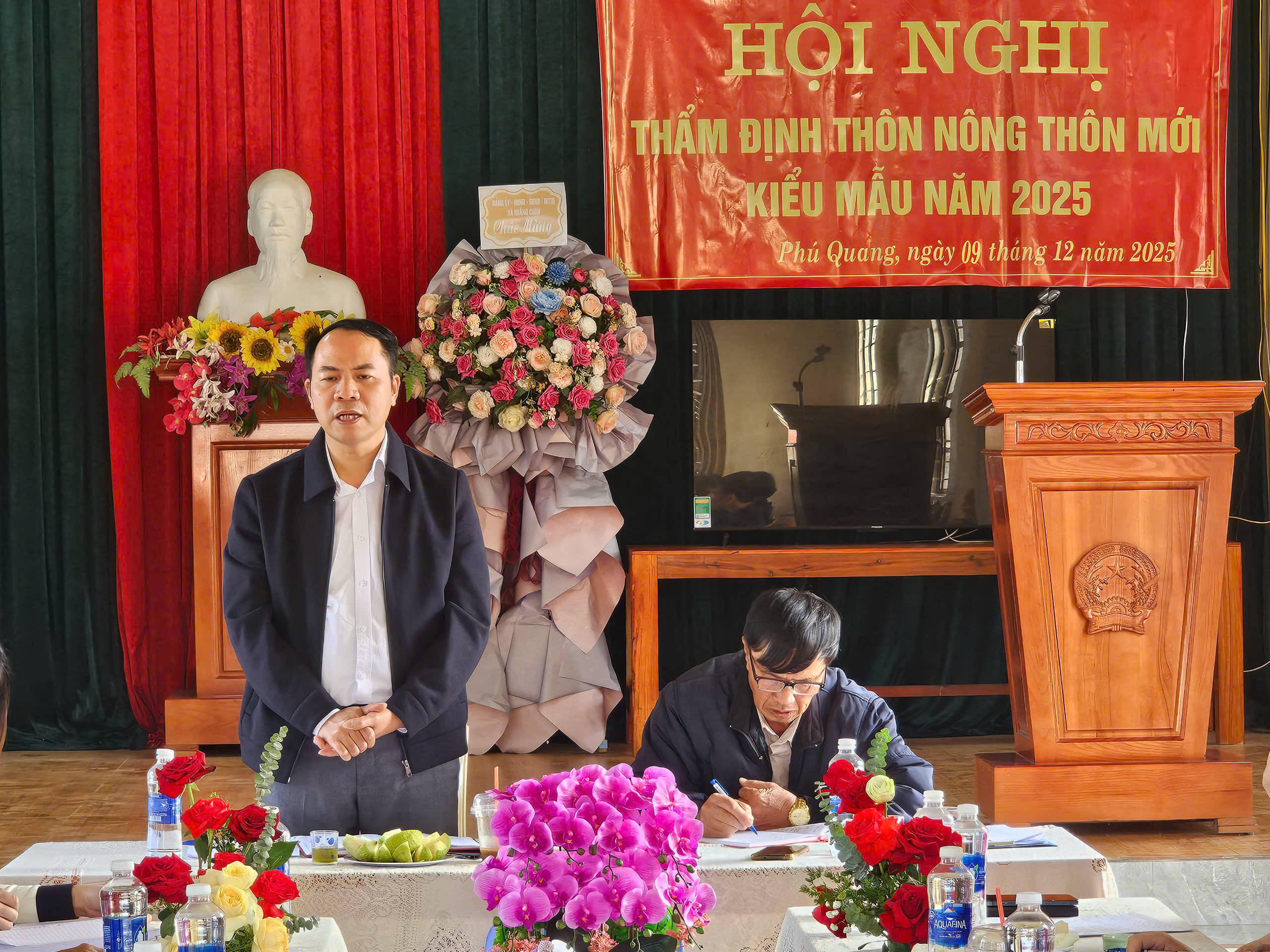 Phát biểu kết luận hội nghị, đồng chí Nguyễn Sỹ Hiệp, Phó Chủ tịch UBND xã; đã ghi nhận và biểu dương những nỗ lực, cố gắng của cán bộ và nhân dân thôn Phú Quang trong quá trình dài phấn đấu, bám sát hoàn thành các tiêu chí xây dựng nông thôn mới kiểu mẫu. Bên cạnh đó cũng nghiêm túc chỉ rõ những điểm cần nhanh chóng tập trung khắc phục; tập trung hoàn thiện tiêu chí nổi trội, tạo điểm nhấn của thôn, tiếp thu tối đa ý kiến đóng góp của thành viên trong đoàn. Trong đó, cần tập trung bổ sung hệ thống cây xanh, cây leo tường rào; chỉnh trang lại đường thôn một cách đồng bộ; phát huy tinh thần đoàn kết, tiếp tục tuyên truyền về ý nghĩa, mục đích, quá trình xây dựng thôn NTM kiểu mẫu để việc xây dựng NTM trở thành nhu cầu của người dân; những tiêu chí đạt rồi cần tiếp tục được nâng cao chất lượng, tiếp tục vận động nhân dân đóng góp mở rộng đường giao thông nông thôn, bổ sung quy định hương ước để người dân cùng thực hiện. Việc hoàn thành các tiêu chí thôn NTM mới kiểu mẫu sẽ là tiền đề và cũng là động lực để chính quyền địa phương và đặc biệt là người dân trong thôn tiếp tục nâng cao đời sống, phát triển kinh tế xã hội.