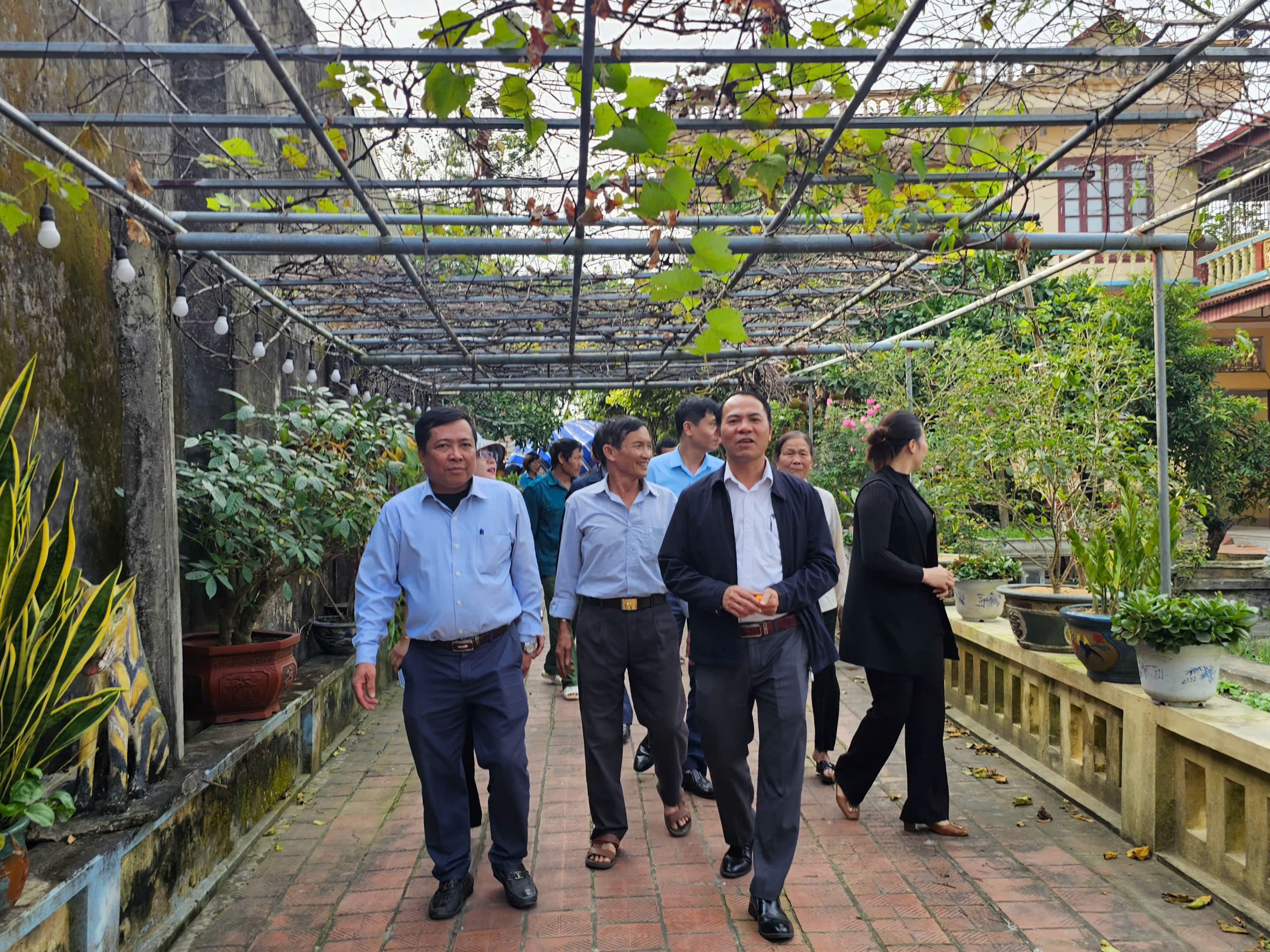 Sau khi kiểm tra thực tế, đoàn đã lắng nghe báo cáo của thôn về quá trình và kết quả thực hiện chương trình xây dựng nông thôn mới kiểu mẫu.