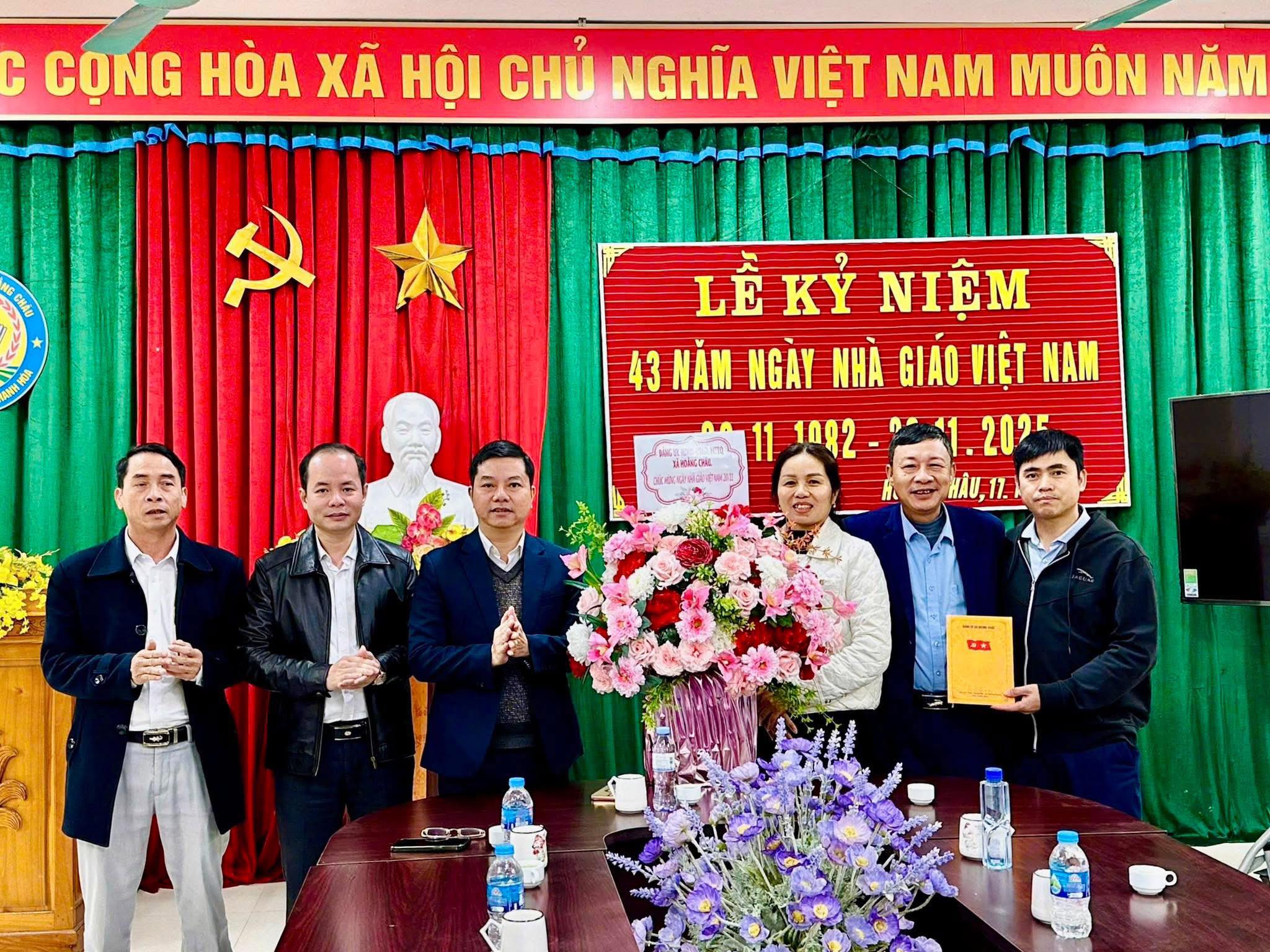 Nhân kỷ niệm Ngày Nhà giáo Việt Nam 20/11, trong những ngày qua, các đồng chí lãnh đạo Đảng ủy, Hội đồng nhân dân, Ủy ban nhân dân, Ủy ban Mặt trận Tổ quốc xã Hoằng Châu đã tổ chức các đoàn đến thăm, tặng hoa và chúc mừng tập thể cán bộ, giáo viên, nhân viên các trường học trên địa bàn xã.